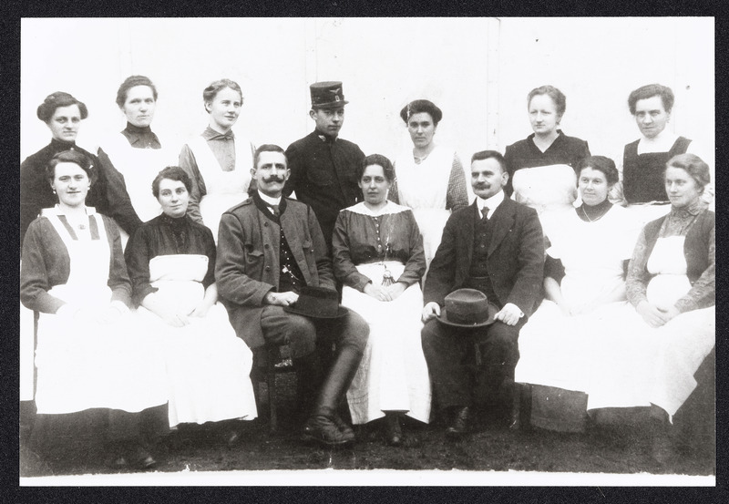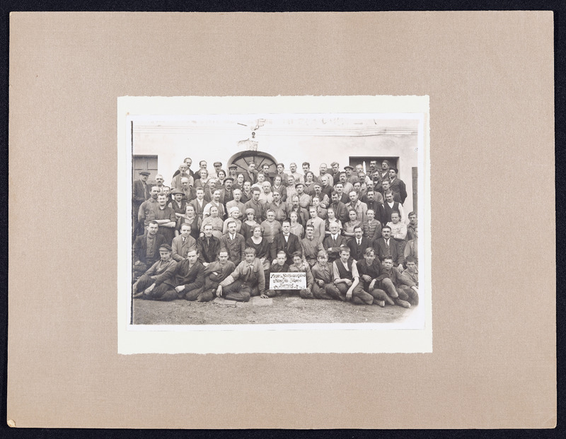 Mitarbeiter der Messer- und Stahlwarenfabrik Franz Pils in Sierning. Gruppe bestehend aus Männern, Frauen und Jugendlichen.