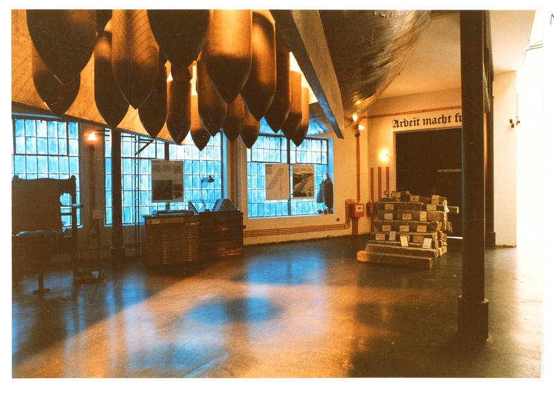 Museum Arbeitswelt Ausstellungsraum, "Arbeit macht frei", Bomben hängen an der Decke