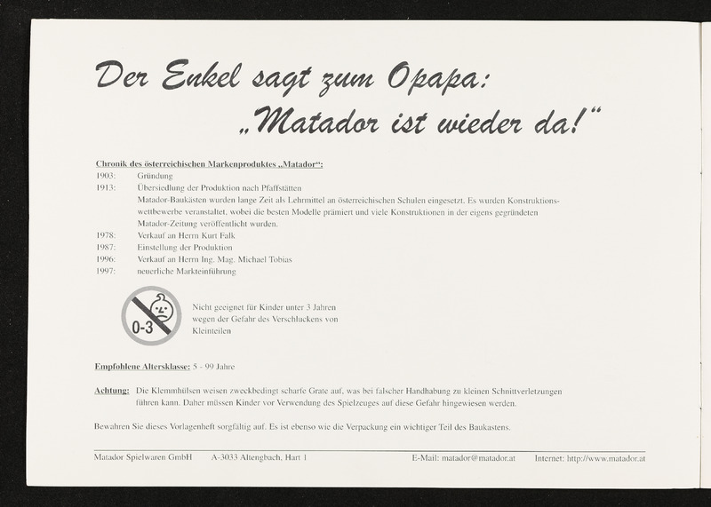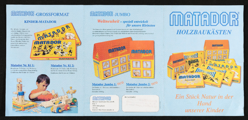 Produktfolder Matador Jumbo, Matador Großformat, Matador Holzbaukasten Nr. 3 der Firma Ing. Mag. Michael Tobias