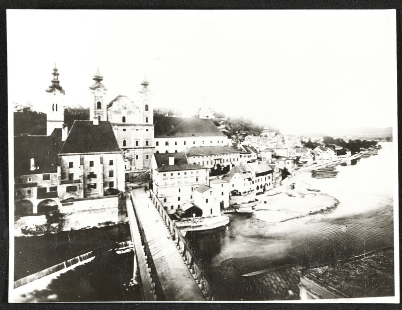 Ansicht vom Ortskai, Bürgerspital, Michaelerkirche und Taborturm in Steyr (zwischen 1918 und 1938)
