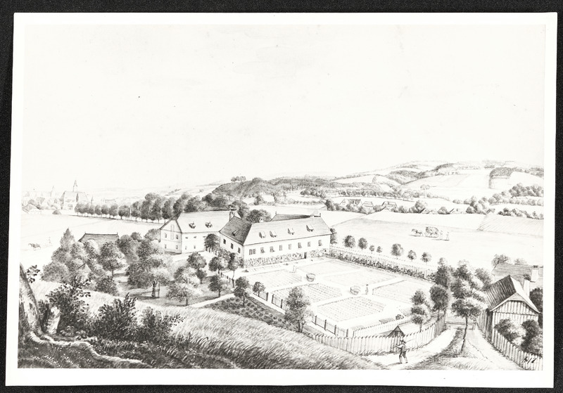 Zeichnung, Ansicht (vor 1914) des Preuenhuberhof in Garsten, später Kunstmühle und Brotfabrik Reder