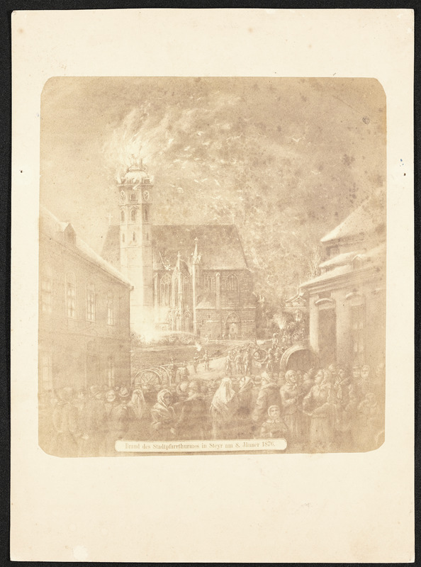Am 8. Jänner 1876 brennt der Turm der Stadtpfarrkirche in Steyr.
