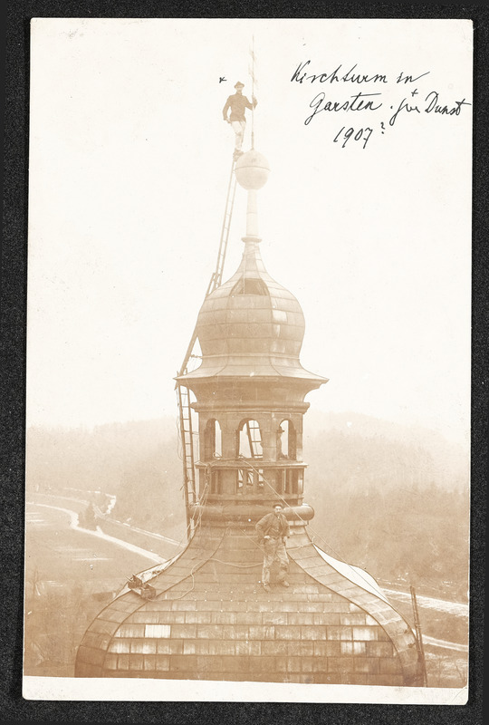 Bau des Kirchturmes im Jahr 1907