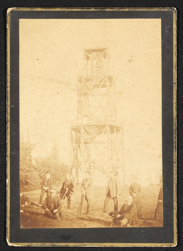 Bau der Dambergwarte in St. Ulrich bei Steyr. Die Aufnahme stammt vom 5. Juni 1888.