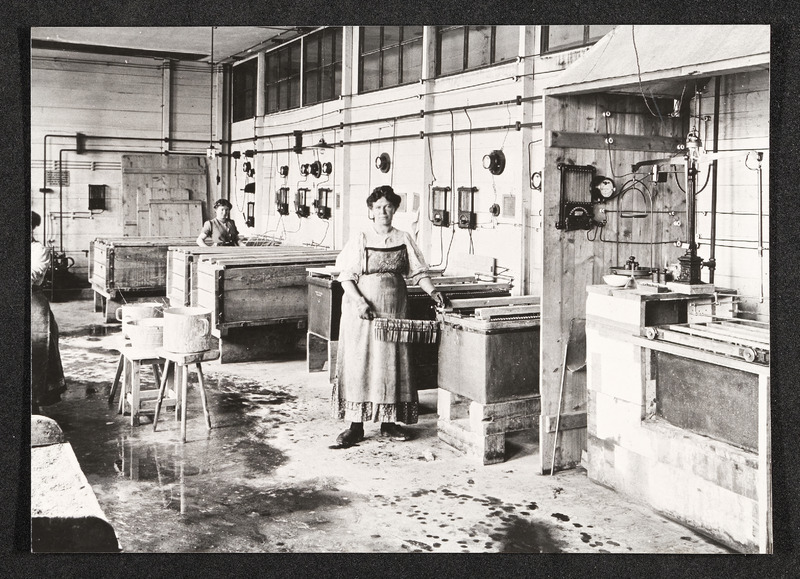 Firma Redtenbacher Sensenwerk, Arbeiterinnen in einer Produktionshalle