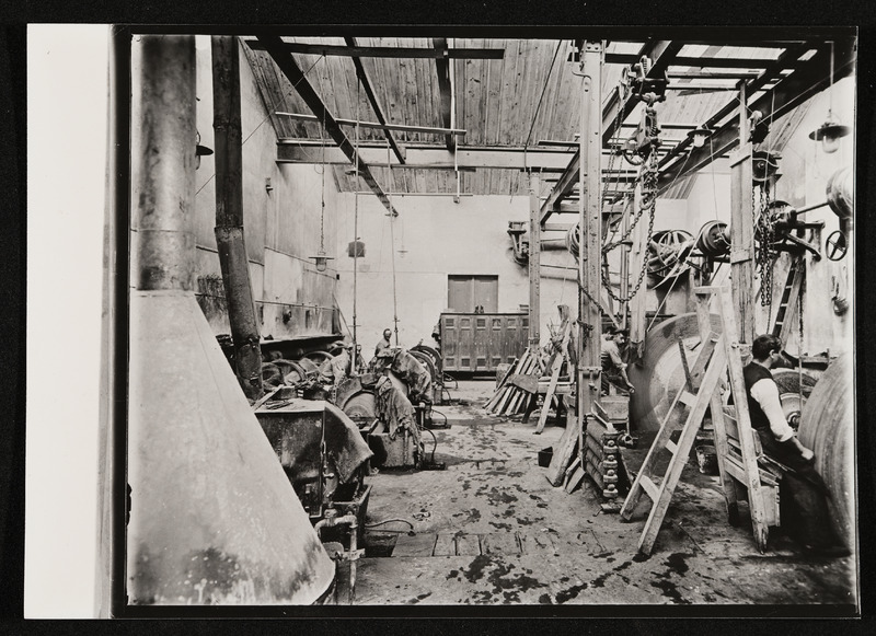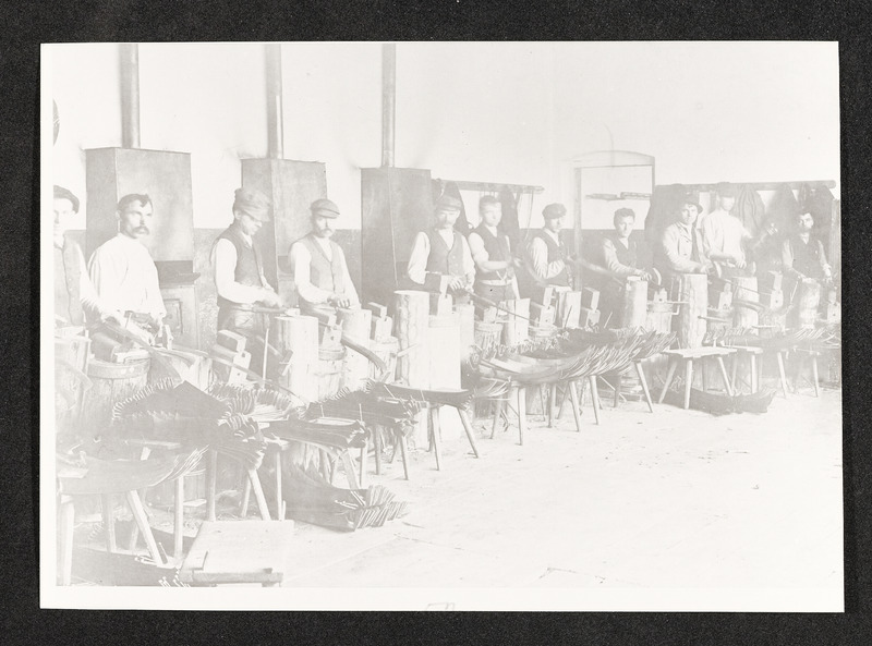Firma Redtenbacher Sensenwerk, Arbeiter in einer Produktionshalle