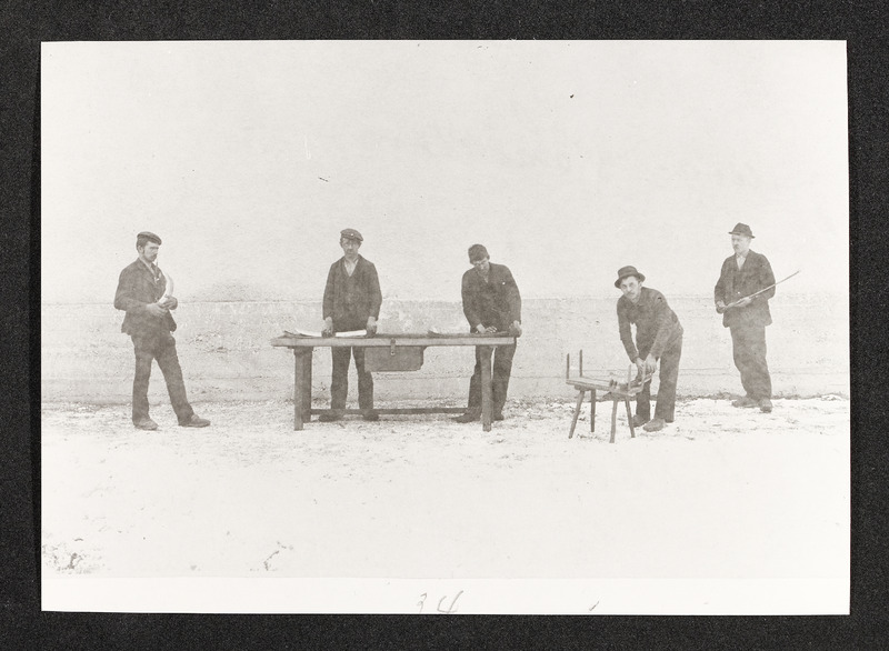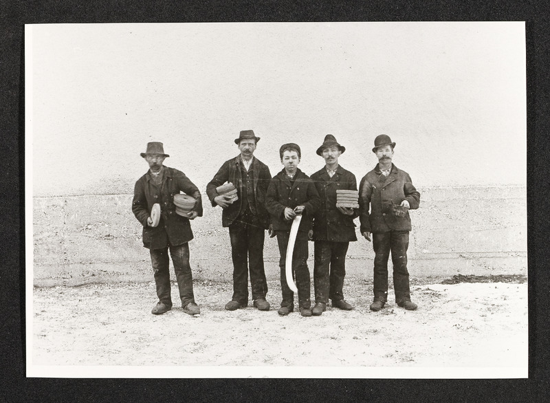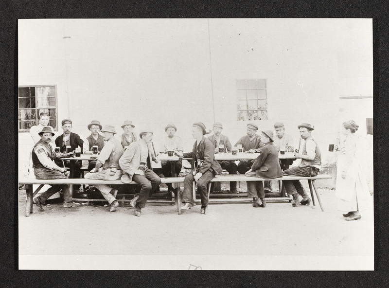 Firma Redtenbacher Sensenwerk, Männer bei der Arbeitspause mit Bewirtung
