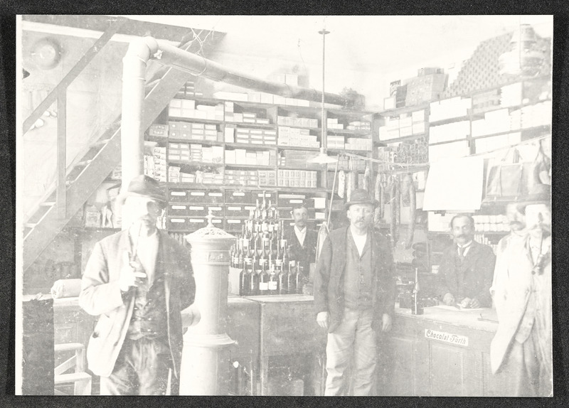 Konsumangestellte und Kunden in der Bahnhofstraße, ca. 1900