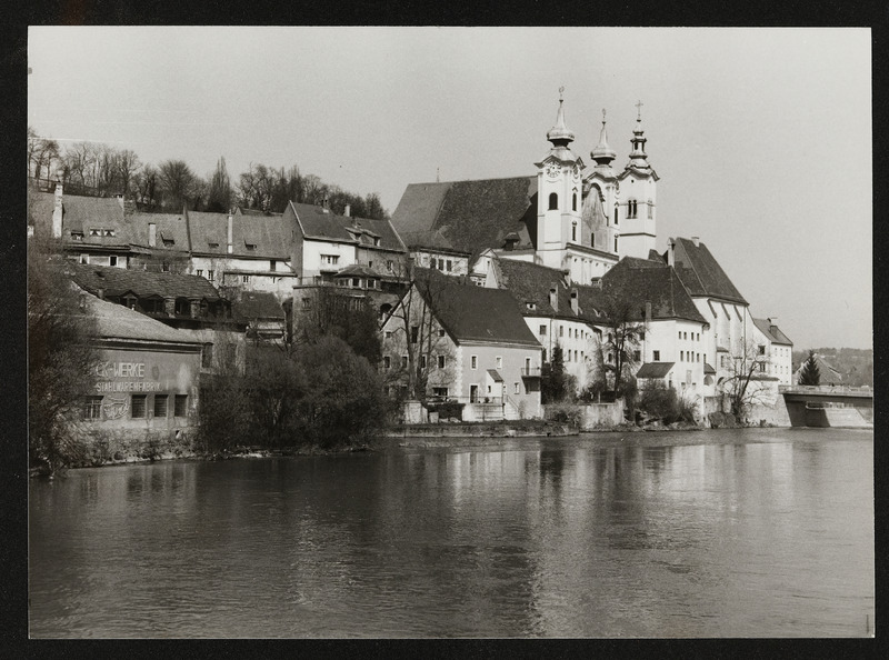 Blick vom Museumssteg nach Steyrdorf, Bürgerspital und Michaelerkirche