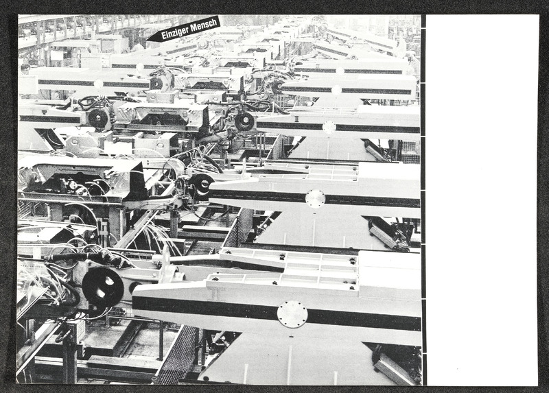 Maschinenhalle mit Hinweis "Einziger Mensch"