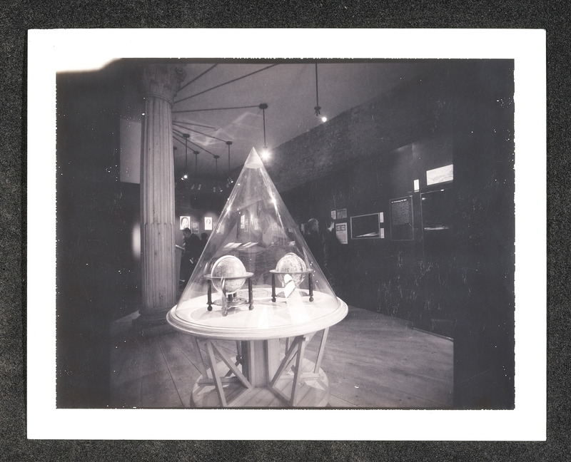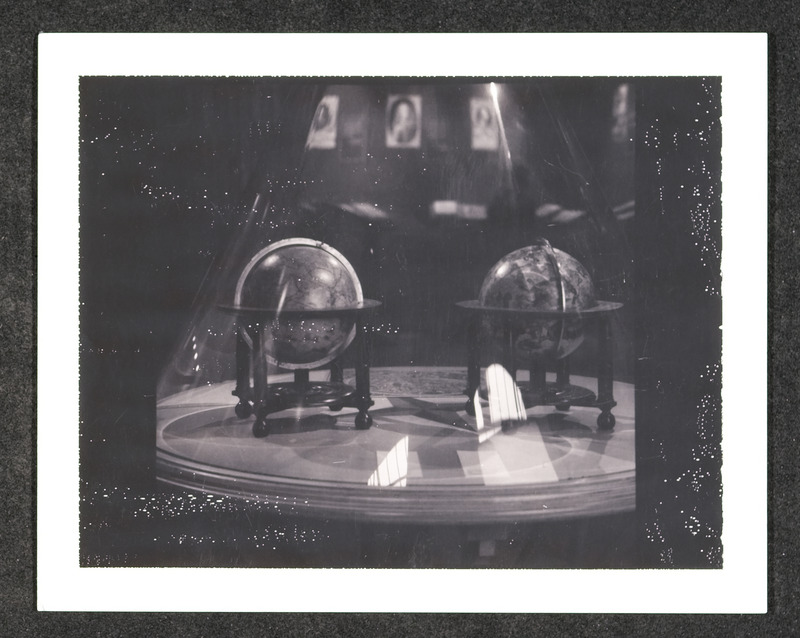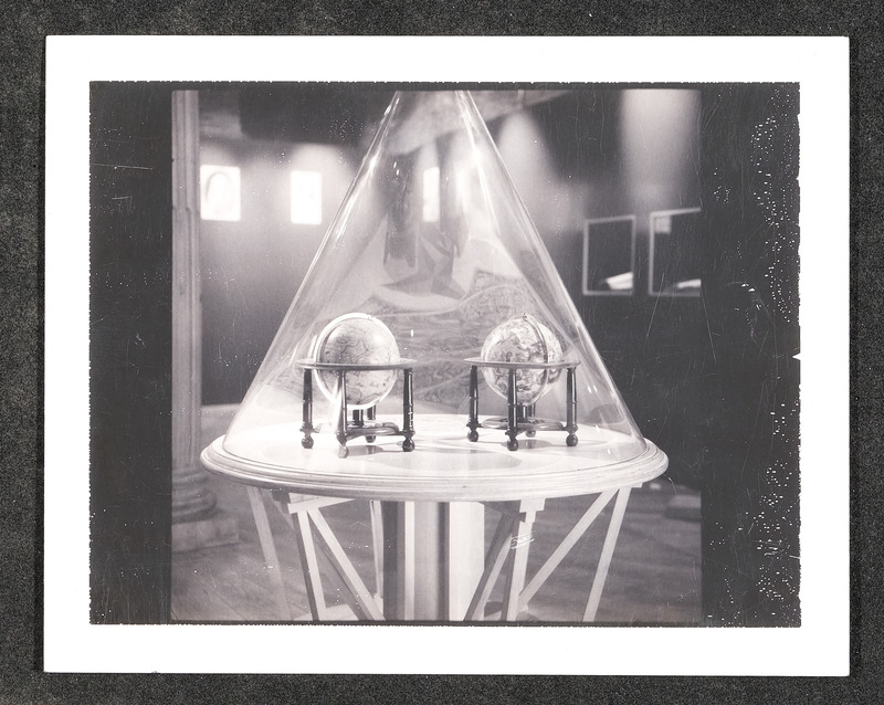 Ausstellungsobjekt "Weltkugeln unter Glaszylinder"