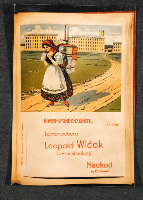 Leinenweberei, Korrespondenzkarte in einem Buch oder einer Zeitung zum Ausschneiden