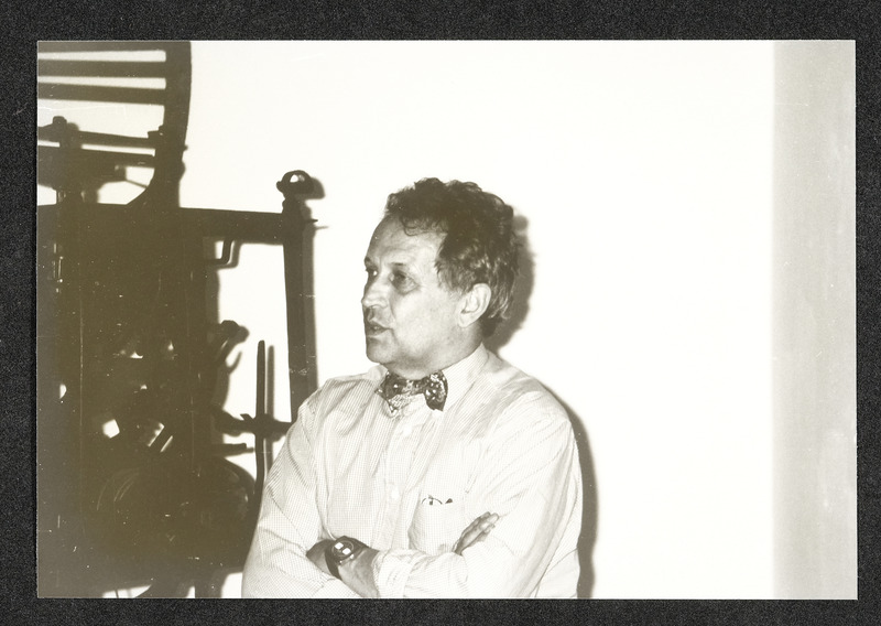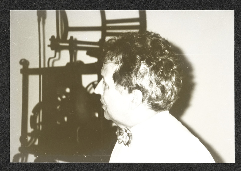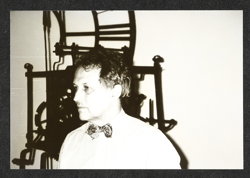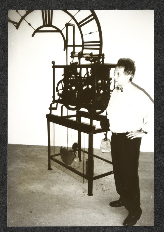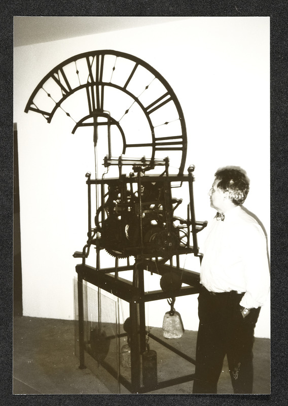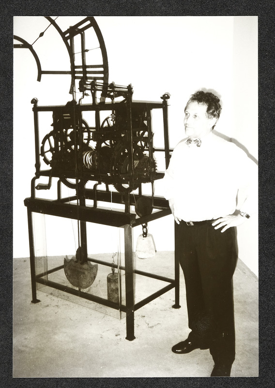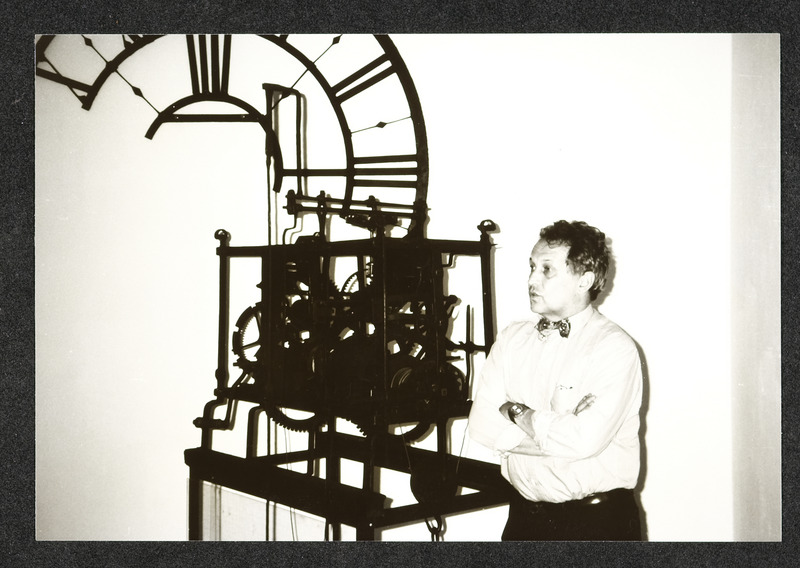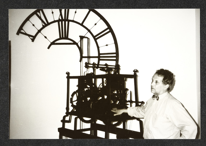 Uhrmachermeister Friedrich Schmollgruber vor einem seiner Uhren-Sammelobjekte
