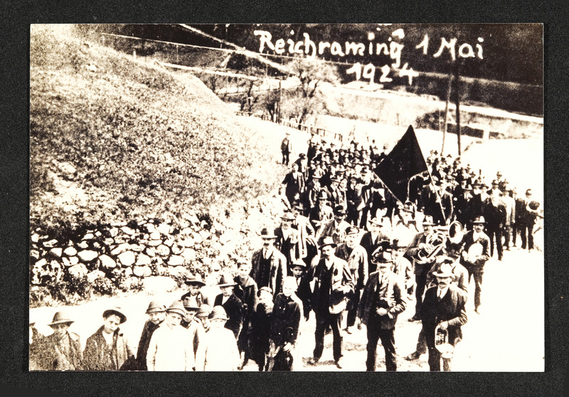 1. Maiaufmarsch von Sozialdemokratinnen und Sozialdemokraten aus Reichraming nach Steyr am 1. Mai 1924