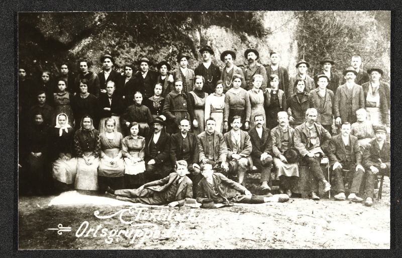 Gruppenbild Textilarbeiter, Männer und Frauen der Ortsgruppe Haslach 1922. Gewerkschaft