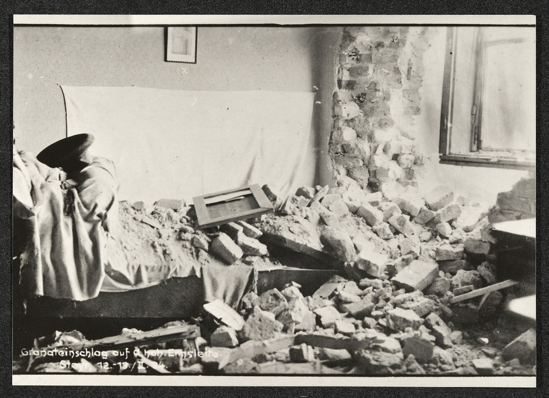 Zerstörungen auf der Ennsleite, Zimmeransicht Granateneinschlag am 12. und 13. Februar 1934