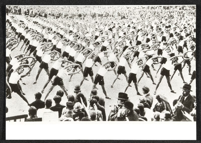 Arbeiterturner bei einer Turnvorführung am 1. Mai, erschienen in der Zeitschrift "Der Kuckuck"
