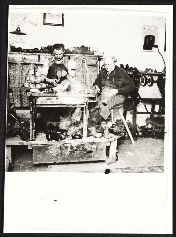 Schustermeister mit Lehrling in der Schusterwerkstatt Karl Höbarth