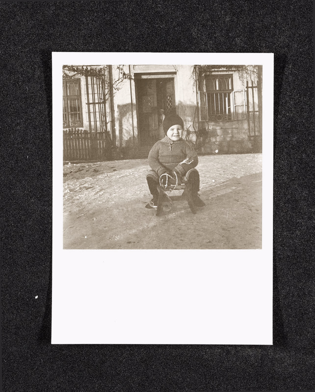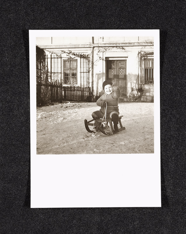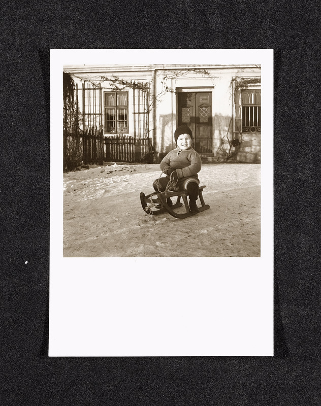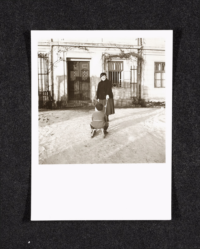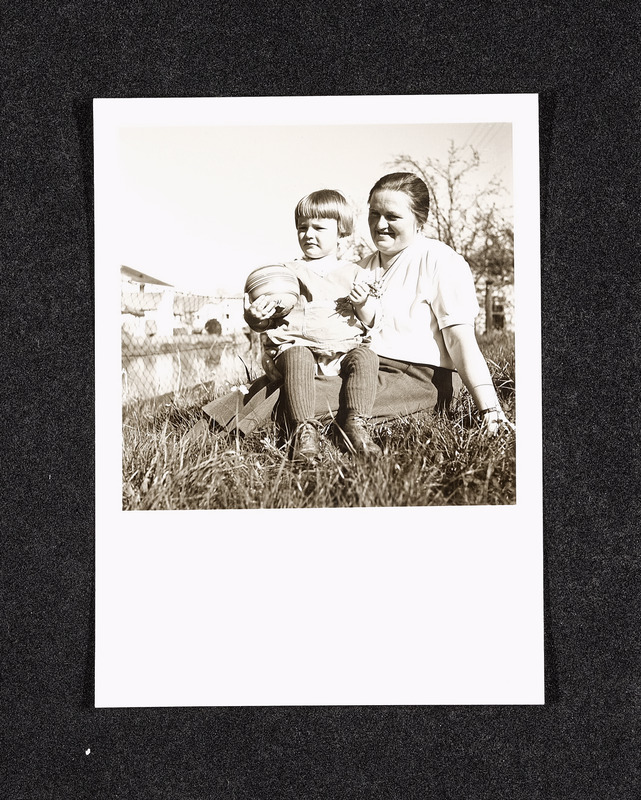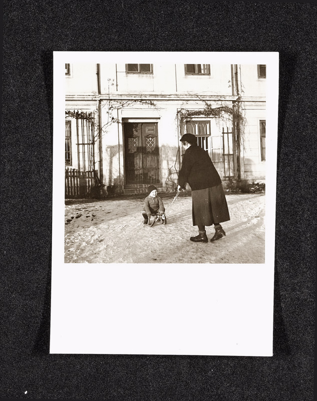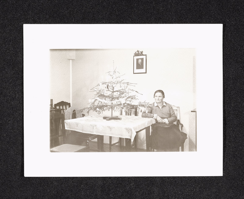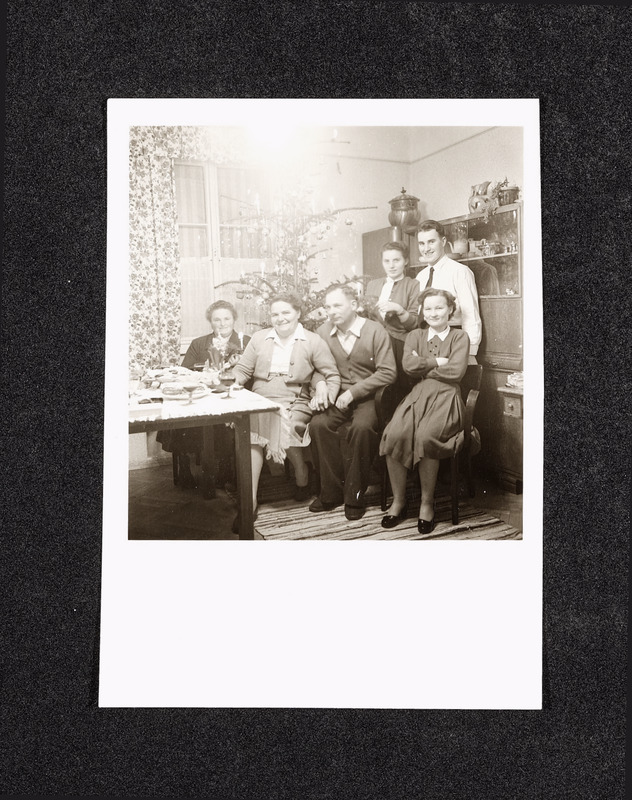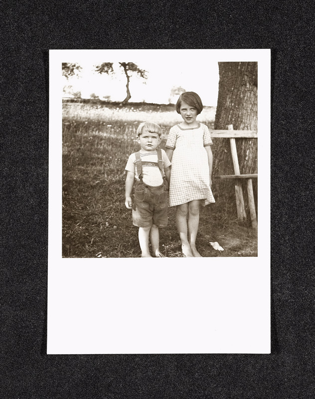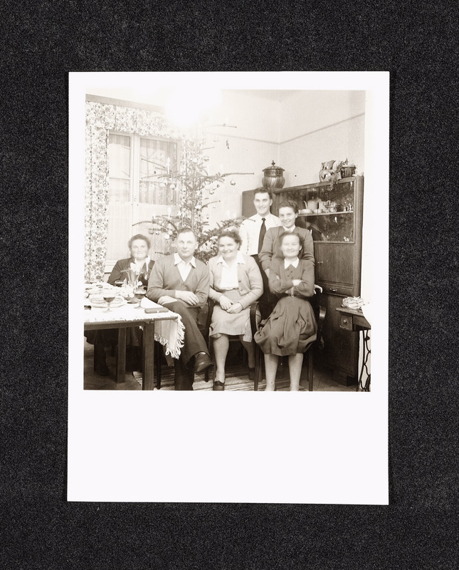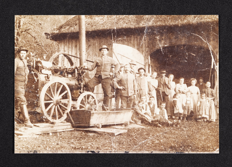 Bauernfamilie mit Dienstboten vor einer Dampfdreschmaschine