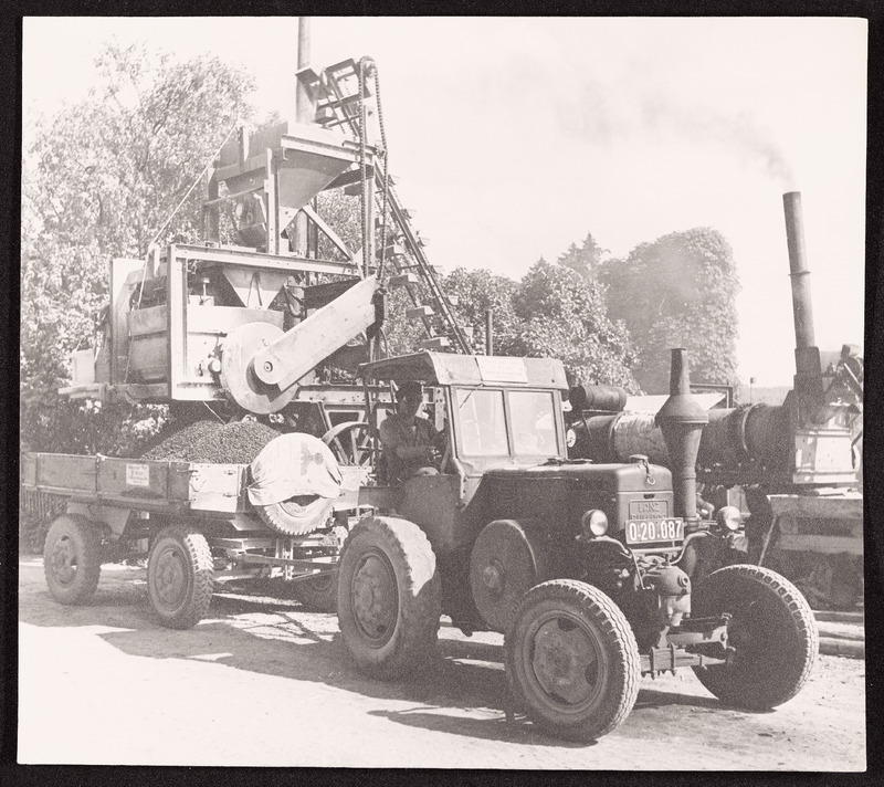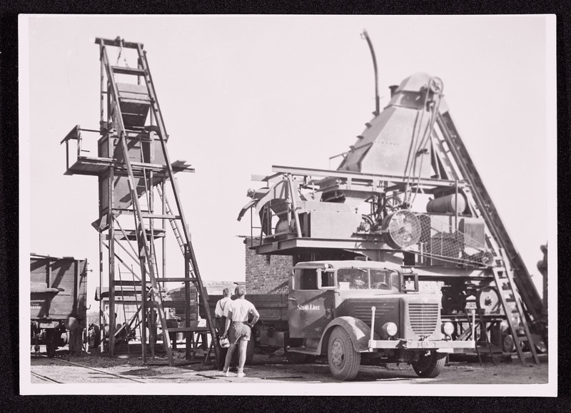 Einsatz von Großmaschinen beim Bau der Hermann Göring Werke in Linz