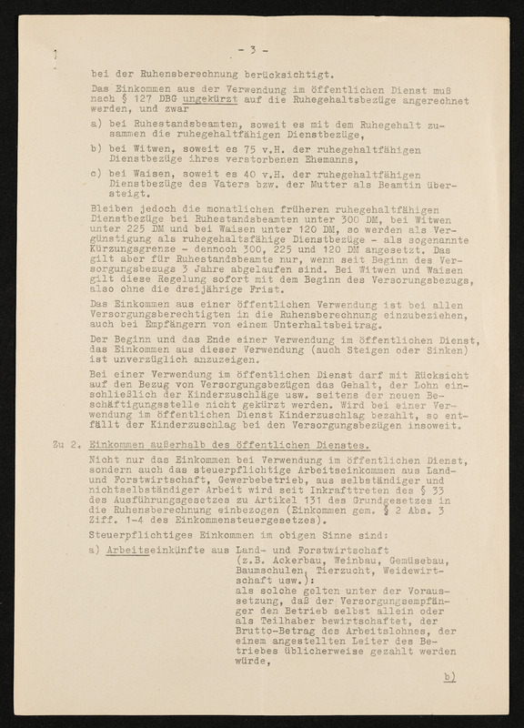 Schreiben der Oberpostdirektiom an den Postbetriebsassistenten a.D. Engelbert Pölderl, Berechnung Nachzahlung Versorgungsbezüge, Stuttgart, 3. Jänner 1957