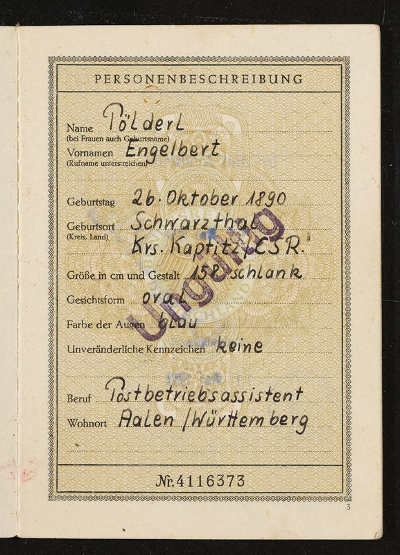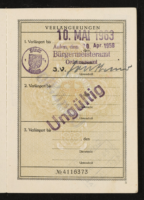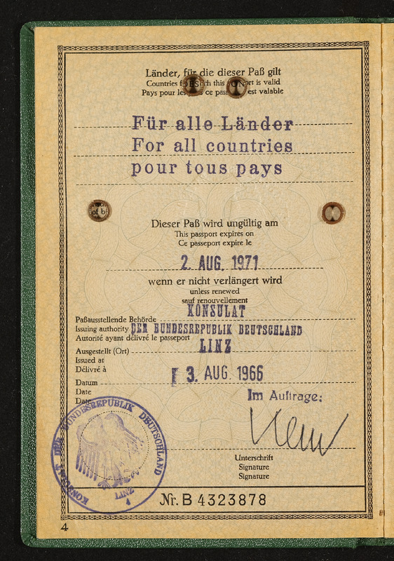 Reisepass Johann Nemec, Bahnbeamter in Pension, Bundesrepublik Deutschand, ausgestellt am 3. August 1966 in Linz vom Konsulat der Bundesrepublik Deutschland