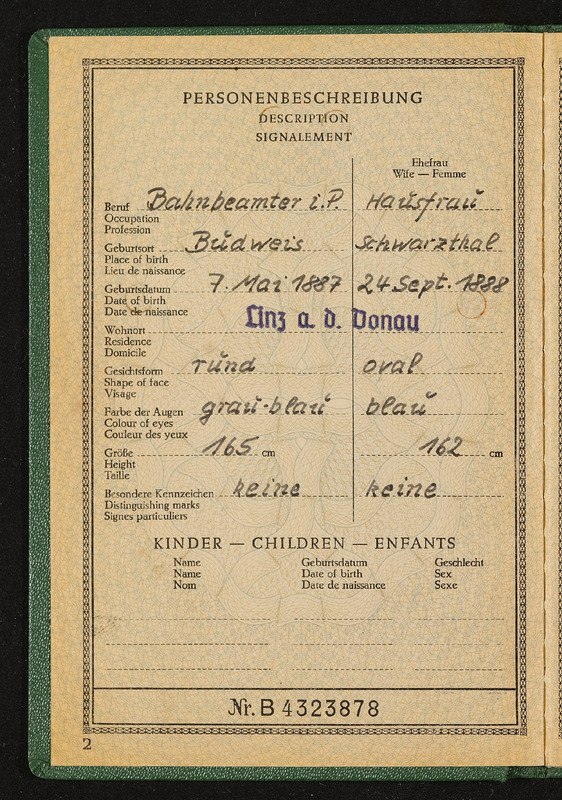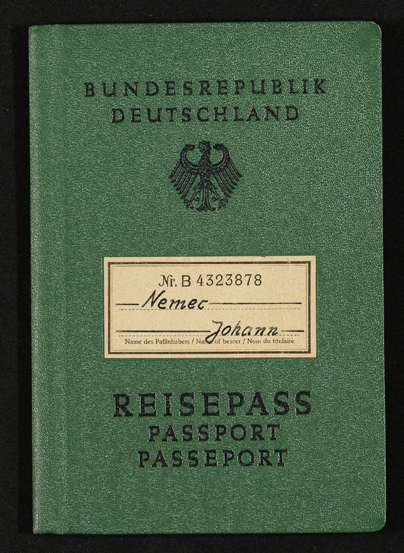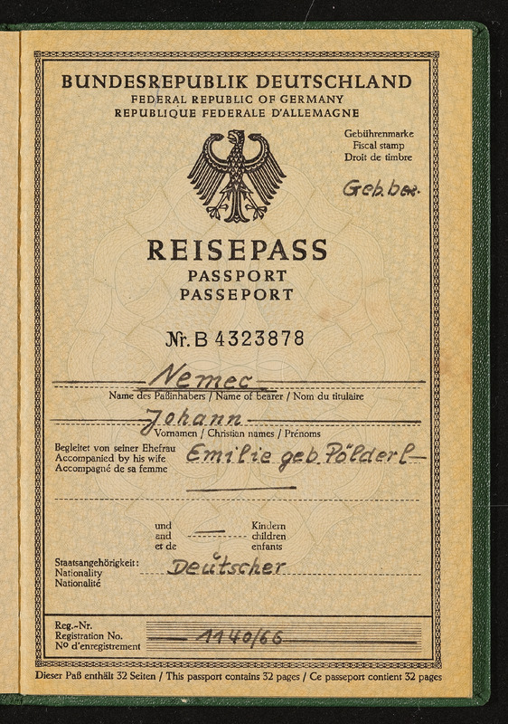 Reisepass Johann Nemec, Bahnbeamter in Pension, Bundesrepublik Deutschand, ausgestellt am 3. August 1966 in Linz vom Konsulat der Bundesrepublik Deutschland