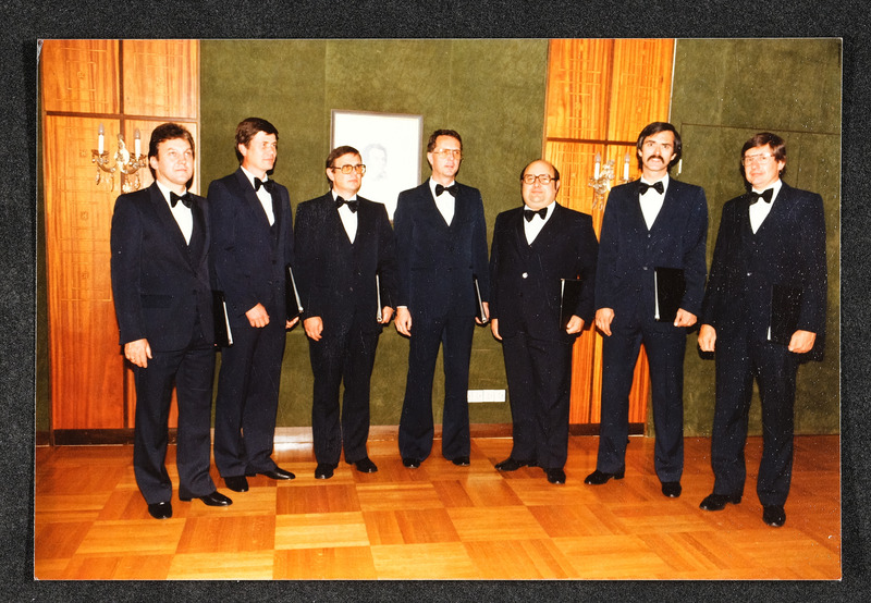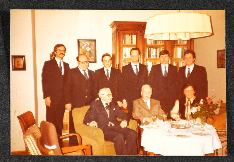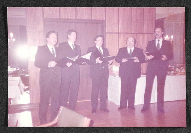 Im April 1983 singt der Männerchor Lyra Linz bei der Geburtstagsfeier von Altbürgermeister Ernst Koref (Bürgermeister von Linz von 1945 bis 1962, in der Mitte sitzend)