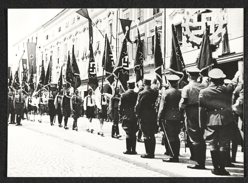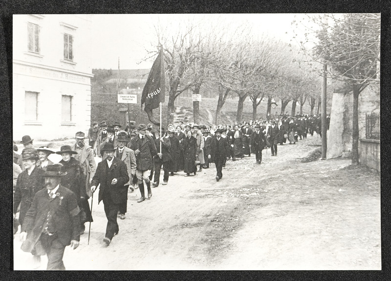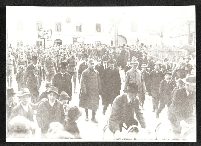 Am 1. Mai 1919 findet in Vöcklabruck ein Sternmarsch statt, der in den gemeinsamen Maiaufmarsch mündet. Hier ist der Teil des Sternmarsches durch die Bahnhofstraße zu sehen.
