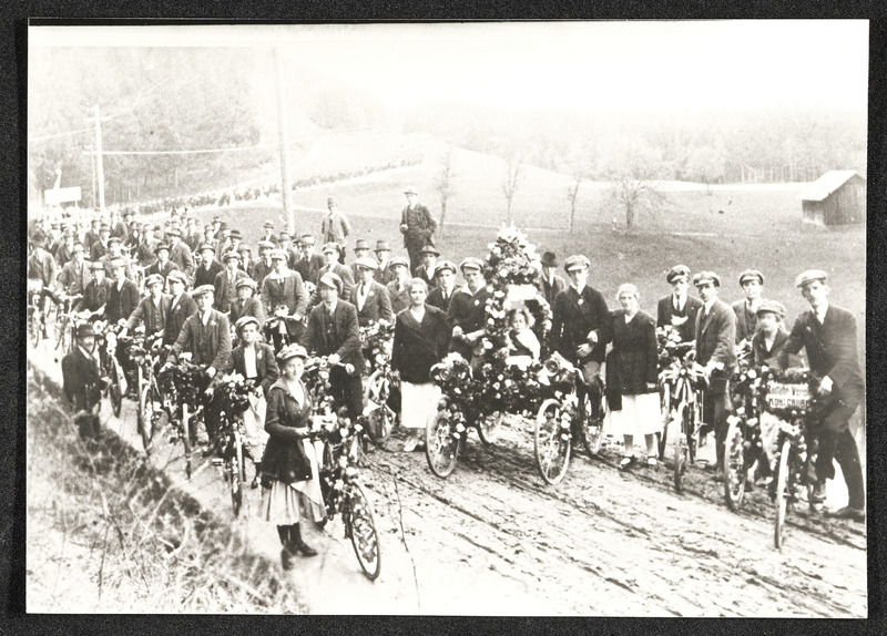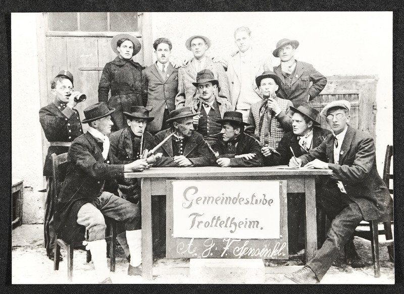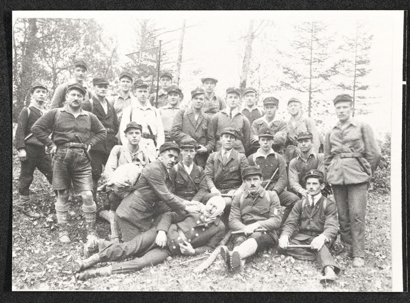 Um 1870 wurde die Bewegung der Freidenker gegründet, die an die gesellschaftspolitischen Ansichten des Zeitalters der Aufklärung anknüpft und als Vorreiter für die kultur- und gesellschaftspolitischen Ziele der Sozialdemokratie gilt. Diese Aufnahme zeigt das "Wiegenfest" (Gründungsfest, vor 1930) einer Freidenker-Gruppe in Holzleithen.