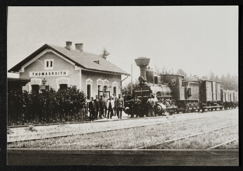 Für den Abtransport der Braunkohle gibt es bereits 1849 eine Pferdebahn von Attnang nach Thomasroith. In Zeiten der Industrialisierung wird diese durch eine Schmalspurbahn ersetzt und am 23. Oktober 1877 eröffnet. Die Aufnahme stammt vom 9. Juli 1907.