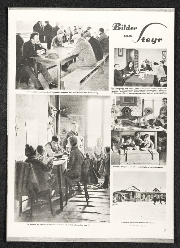 Artikel über die Arbeitslosigkeit in Steyr, erschienen in der Zeitschrift Der Kuckuck, im rechten oberen Bild ist der Bürgermeister Franz Sichlrader zu sehen
