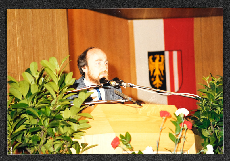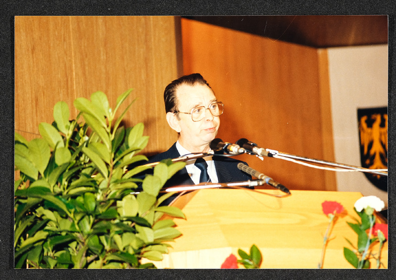 Festakt am 30. April 1987 im Stadtsaal Steyr anlässlich der Eröffnung der Landesausstellung 1987 "Arbeit Mensch Maschine: Der Weg in die Industriegesellschaft" im Museum Industrielle Arbeitswelt Steyr.