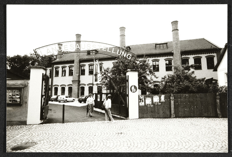 1987 Landesausstellung "Arbeit Mensch Maschine: Der Weg in die Industriegesellschaft". Blick zum Eingangsportal der Landesausstellung beim Museum Industrielle Arbeitswelt Steyr.