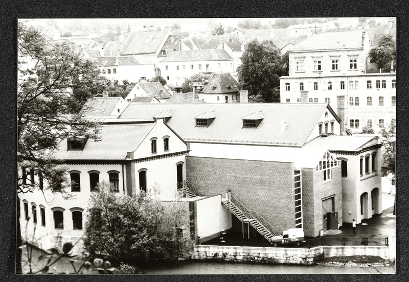 1987 Landesausstellung "Arbeit Mensch Maschine: Der Weg in die Industriegesellschaft". Blick auf die Ost- und Nordseite des Museum Industrielle Arbeitswelt Steyr.