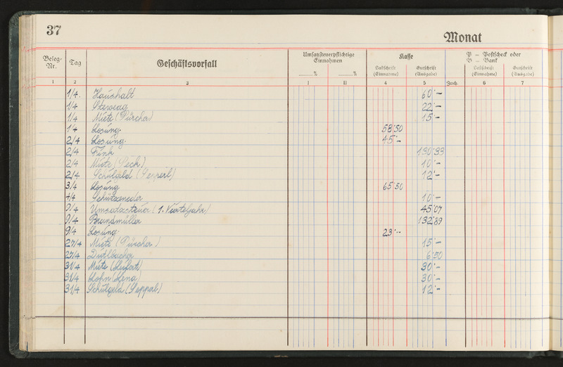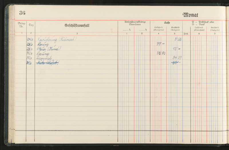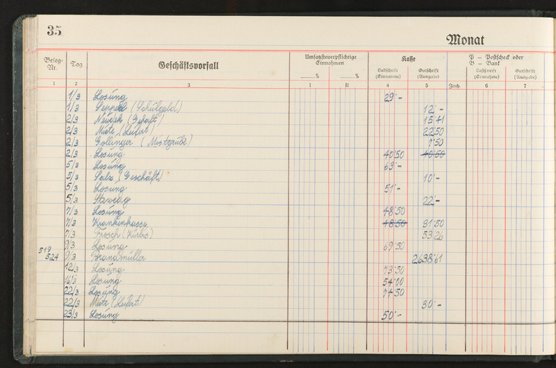 Geschäftstagebuch für den Einzelhandel nach den Mindestanforderungen für die Buchführungspflicht, Marke Alma, für den Zeitraum November 1944 bis April 1946