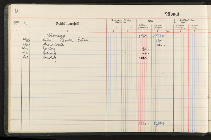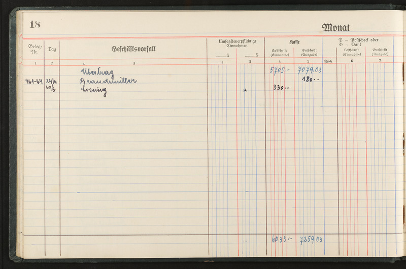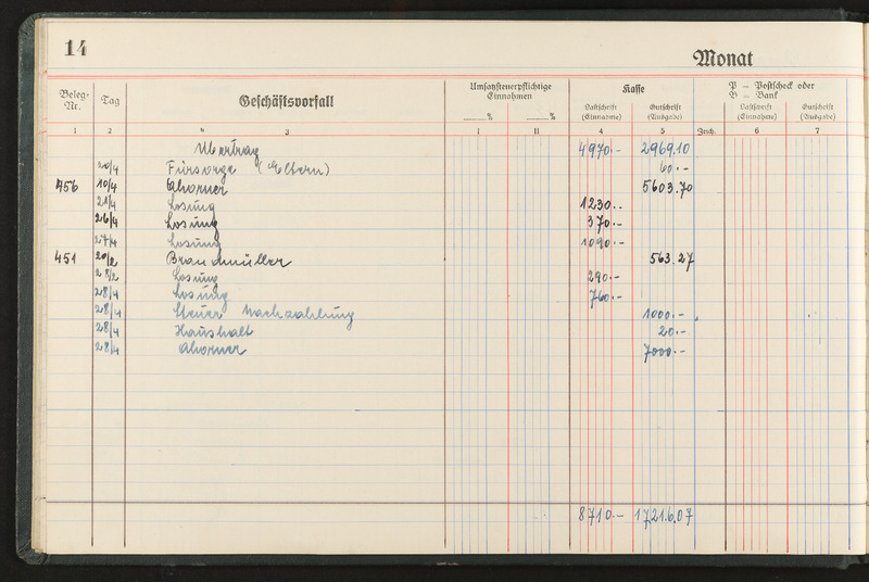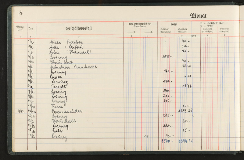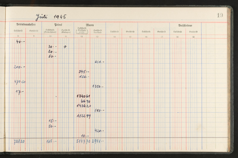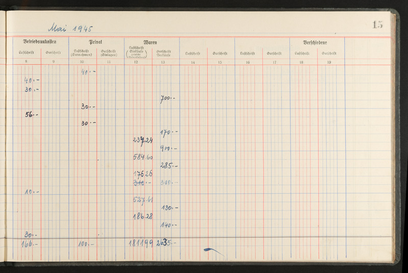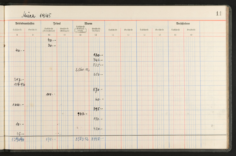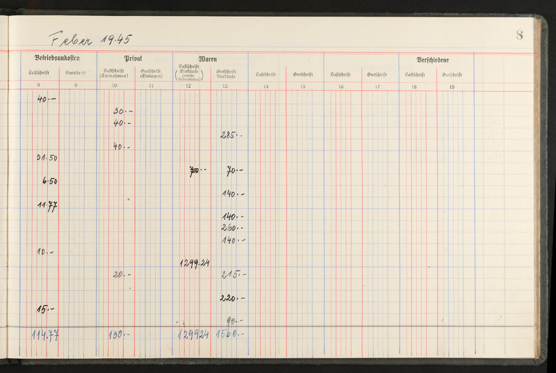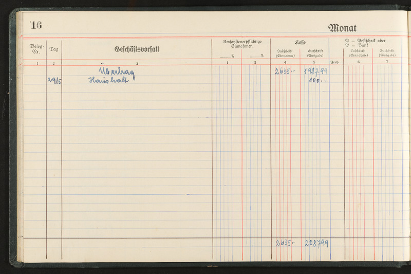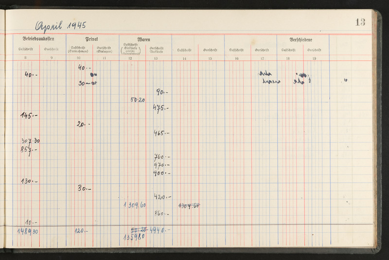 Geschäftstagebuch für den Einzelhandel nach den Mindestanforderungen für die Buchführungspflicht, Marke Alma, für den Zeitraum November 1944 bis April 1946
