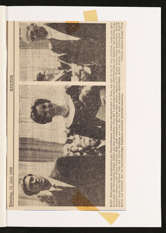 Programmheft des Österreichischen Arbeitersängerbundes anläßlich des Bundessängerfestes in Wien vom 13. bis 16. Juni 1968, "100 Jahre Lied der Areit" 1868-1968