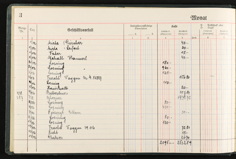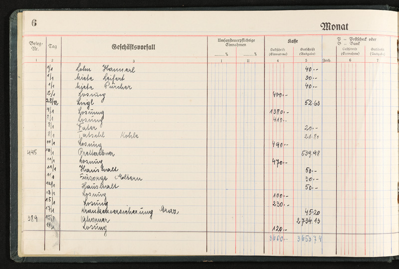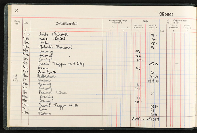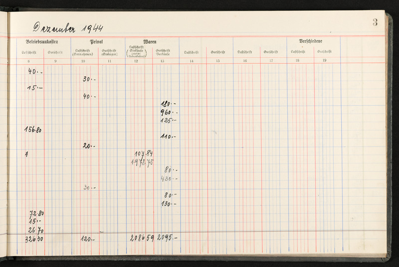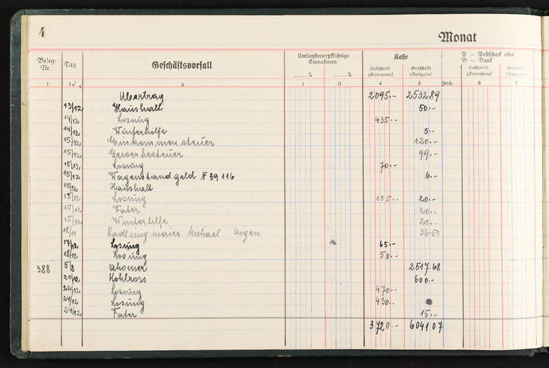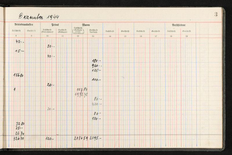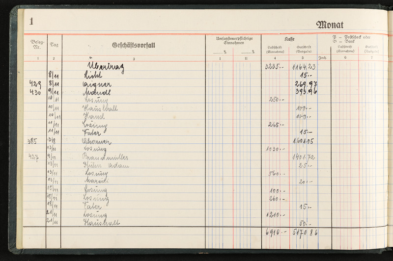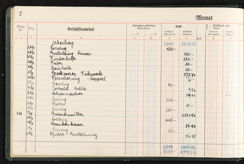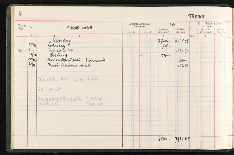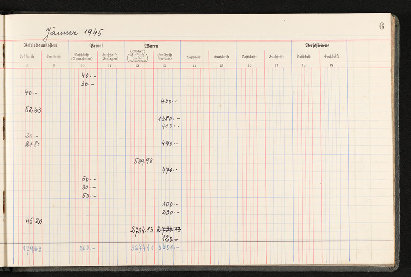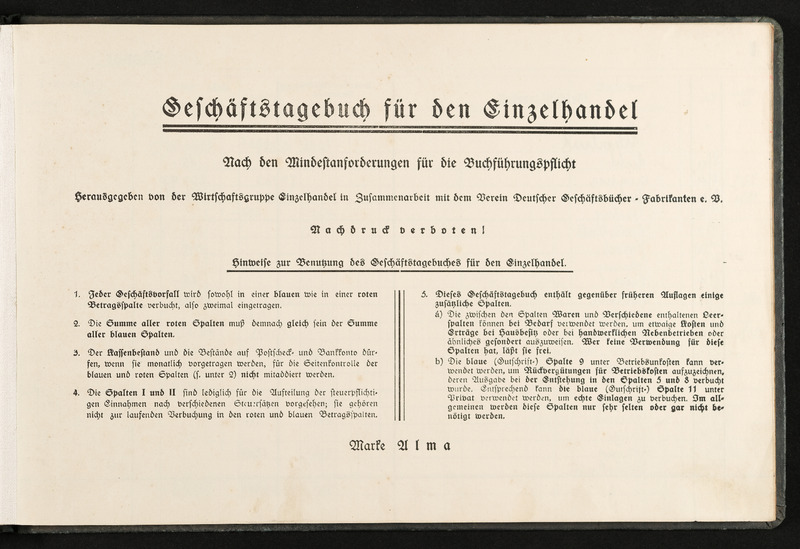 Geschäftstagebuch für den Einzelhandel nach den Mindestanforderungen für die Buchführungspflicht, Marke Alma, für den Zeitraum November 1944 bis April 1946
