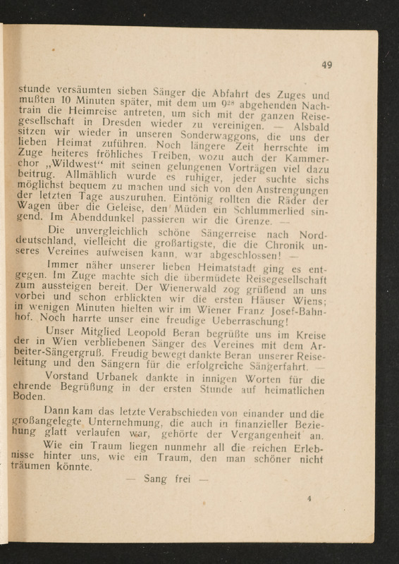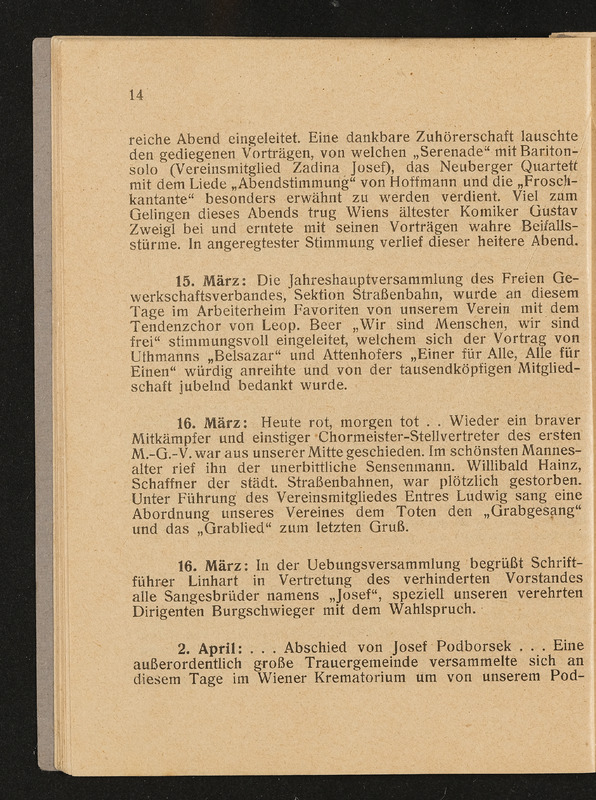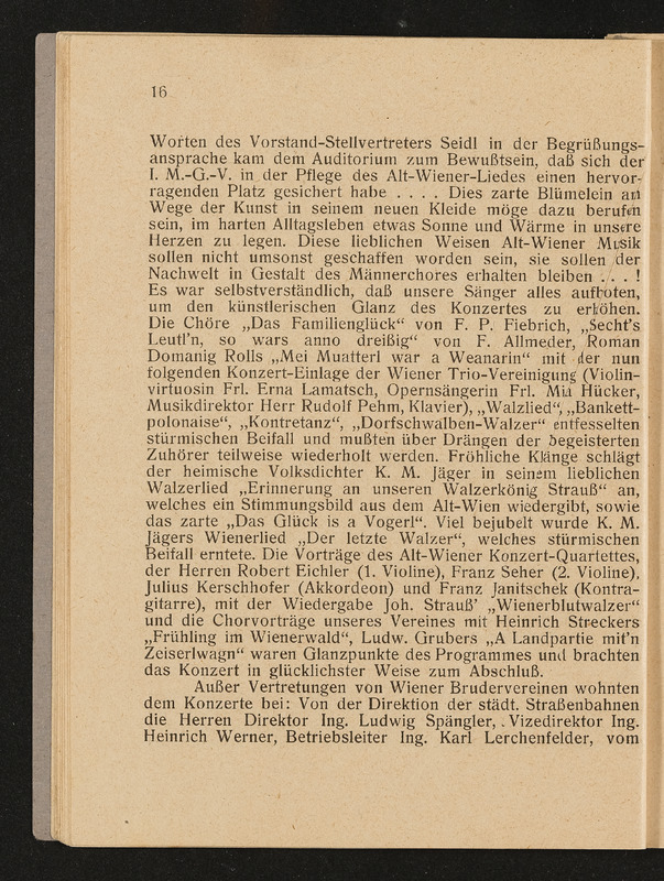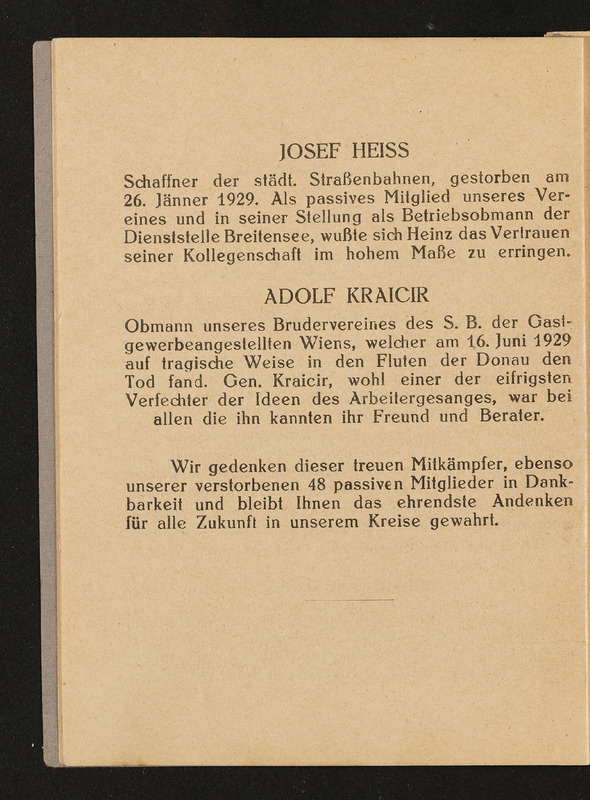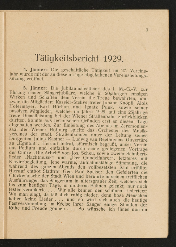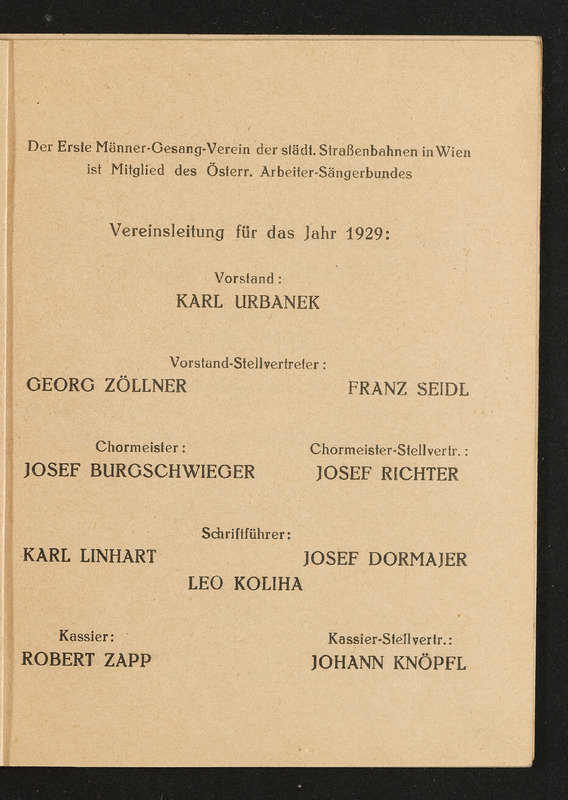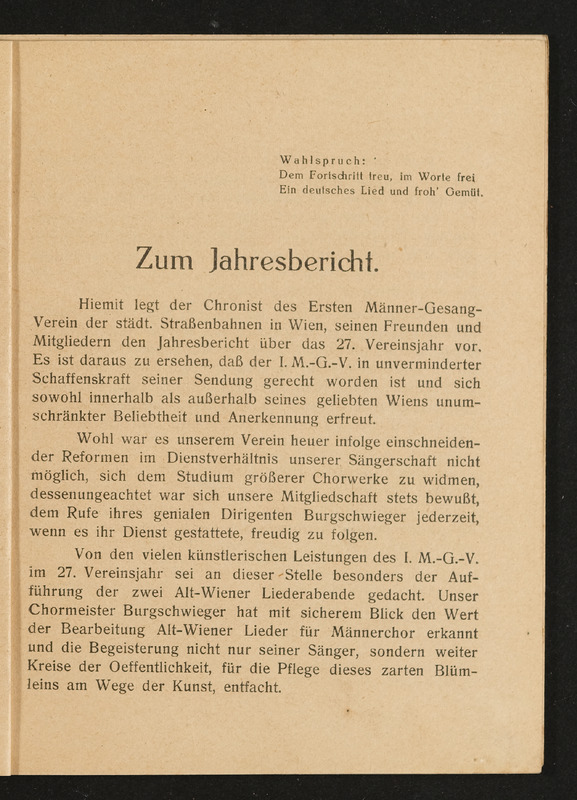 Jahresbericht des ersten Männer-Gesangsvereines der städtischen Straßenbahnen in Wien über das 27. Vereinsjahr 1929