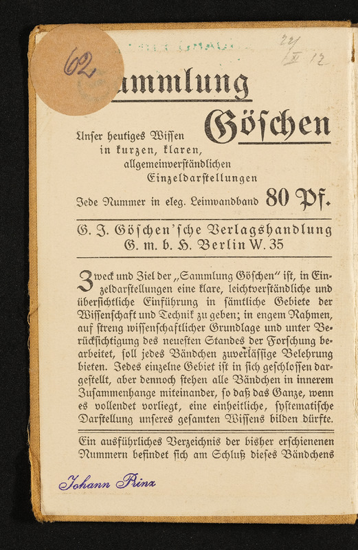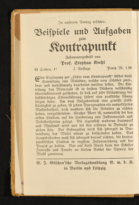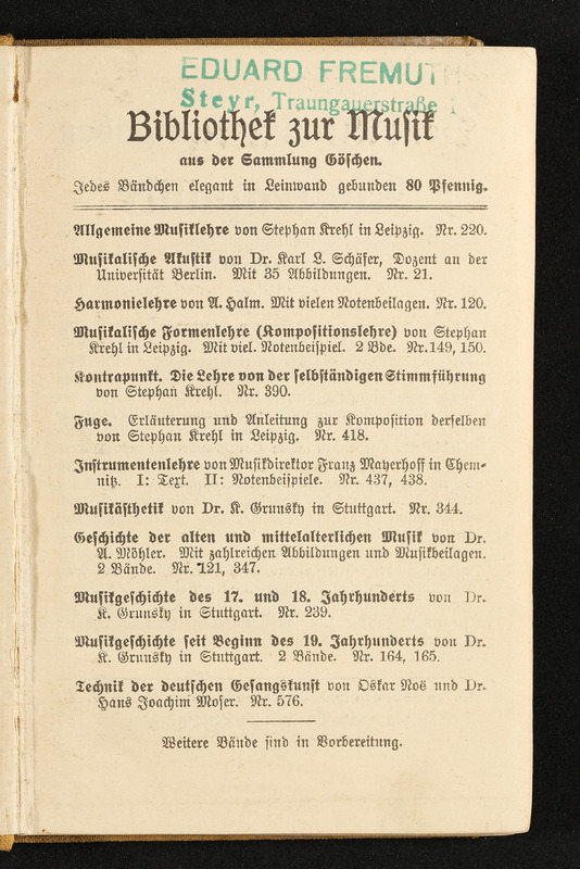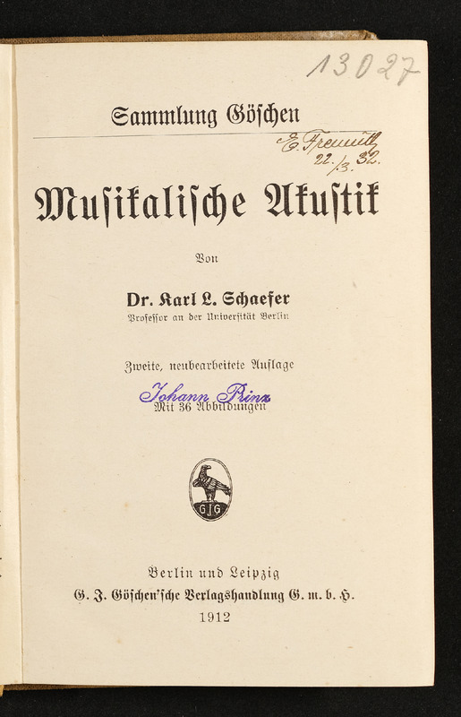 Musikbuch, Musikalische Akustik von Karl Ludolf Schaefer, Sammlung Göschen, G.J. Göschen'sche Verlagsbuchhandlung Berlin, Leipzig 1912