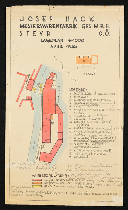 Gebäudeschätzung, Josef Hack, Messerwarenfabrik Ges.m.b.H, Steyr, 1938