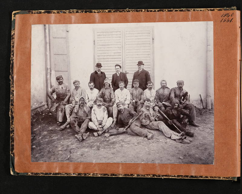 Gruppe von Arbeitern mit Firmenleitung, Gummiwarenfabrik Reithoffer