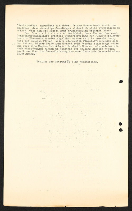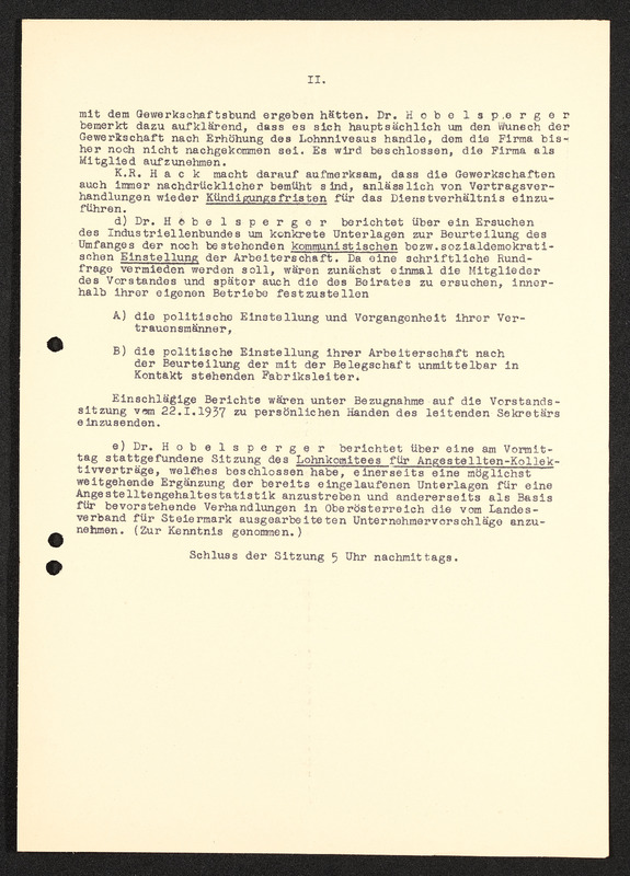 Gedächnisprotokoll zur 11. Vorstandssitzung am 28. November 1936, Bund der österreichischen Industriellen, Landesverband für Oberösterriech, Industriellenverband Oberösterreich