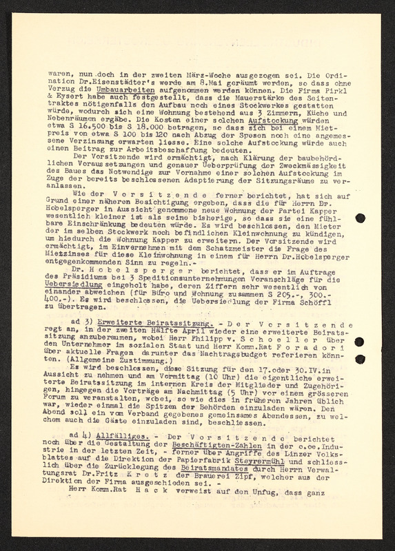 Gedächnisprotokoll zur 3. Vorstandssitzung, Bund der österreichischen Industriellen Landesverband für Oberösterriech, Industriellenverband Oberösterreich