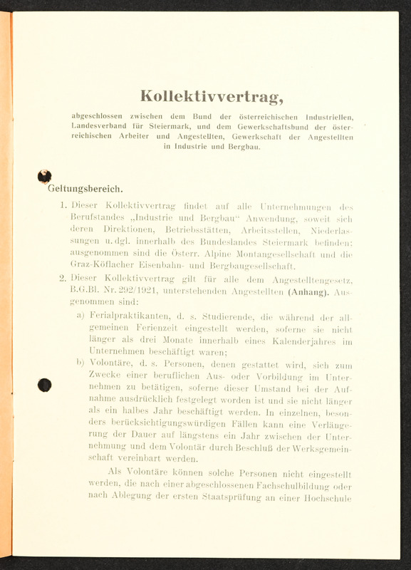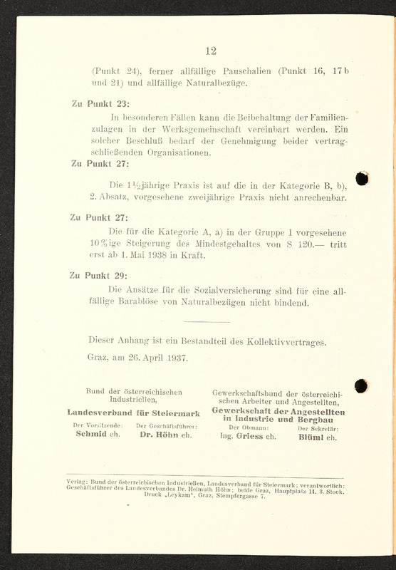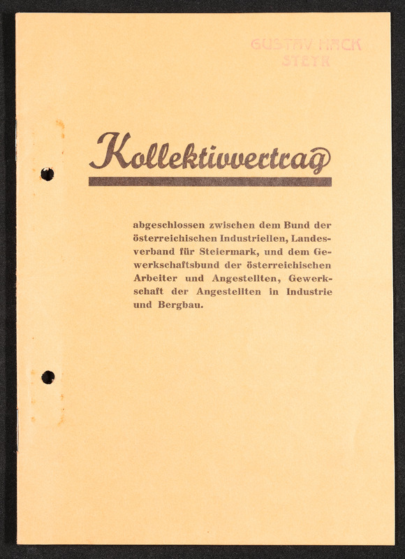 Kollektivvertrag vom 26. April 1937, abgeschlossen zwischen dem Bund der österreichischen Industriellen, Landesverband Steiermark und ÖGB
