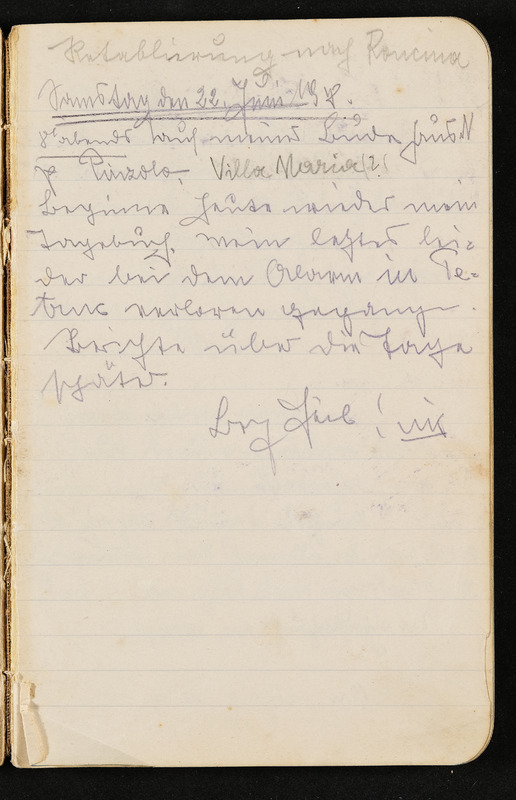 Notizbuch von Ludwig Pullirsch, Eintrag: Retablierung nach Roncina, Samstag, den 22. Juni 1918, Seite 33
