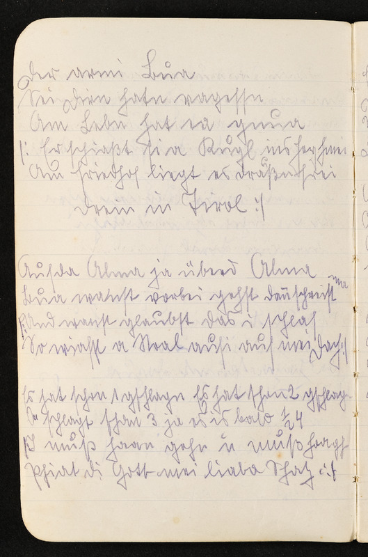 Notizbuch von Ludwig Pullirsch: Eintrag: Sierninghofen, 25. März 1919 mit Text "Liebchen", Seite 39
