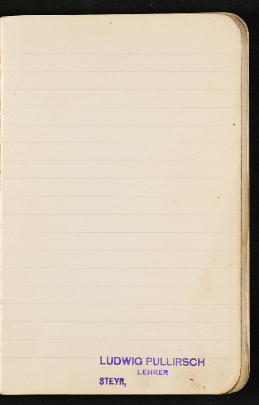 Notizbuch von Ludwig Pullirsch, Seite 3, Stempel: Ludwig Pullirsch, Lehrer, Steyr