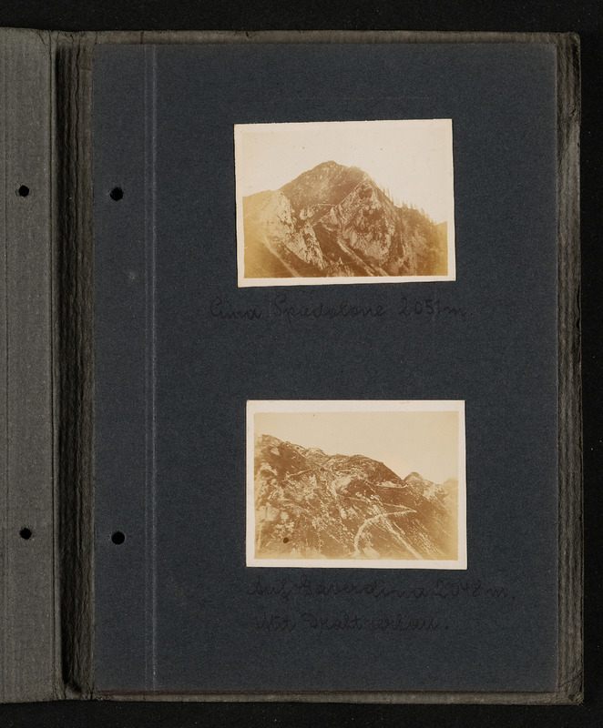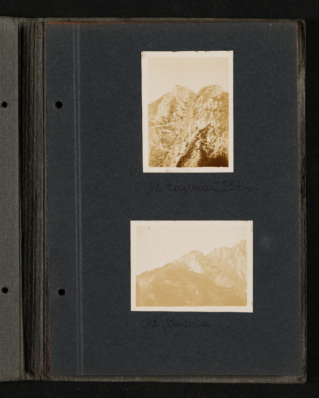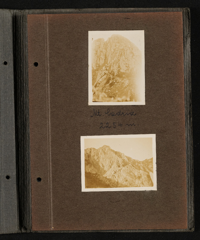 Fotoalbum FRONT 1918 von Ludwig Pullirsch, Blatt 5. Foto oben: Monte Cadria 2254m, Foto unten: Padria